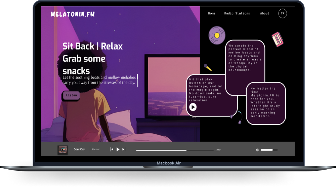 J'ai choisi le thème "Lofi" pour la conception de ce site web avec une grande dose de nostalgie et de passion pour la production musicale. Le "Lofi" évoque en moi des souvenirs chaleureux, une époque où la musique avait ce pouvoir unique de nous transporter dans un monde de douce mélancolie.
